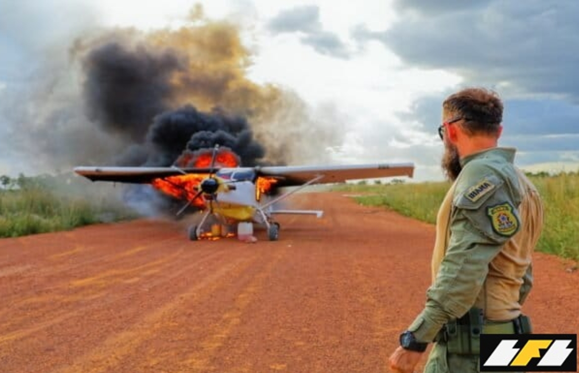 Banner image: A small airplane used for illegal mining set on fire by IBAMA inspectors in the Yanomami Indigenous Territory. Image courtesy of IBAMA.